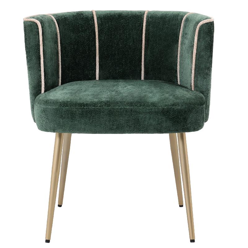 Der Armlehnstuhl Nell aus der PTMD-Kollektion vereint Retro-Charme mit modernem Sitzkomfort. Sein edler Bezug in Tiefgrün mit feinen, hell abgesetzten Zierlinien verleiht ihm einen Hauch von Vintage-Eleganz. Die goldfarbenen Metallbeine sorgen für einen luxuriösen Kontrast und runden das stilvolle Erscheinungsbild harmonisch ab.